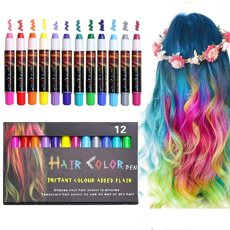 Ezco 12 Color Temporary Hair Chalk Pens Crayon Salon Washable Hair Color Dye Face Kit Safe For Makeup Birthday Party Gift For Girls Kids Teen Adult Walmart Com